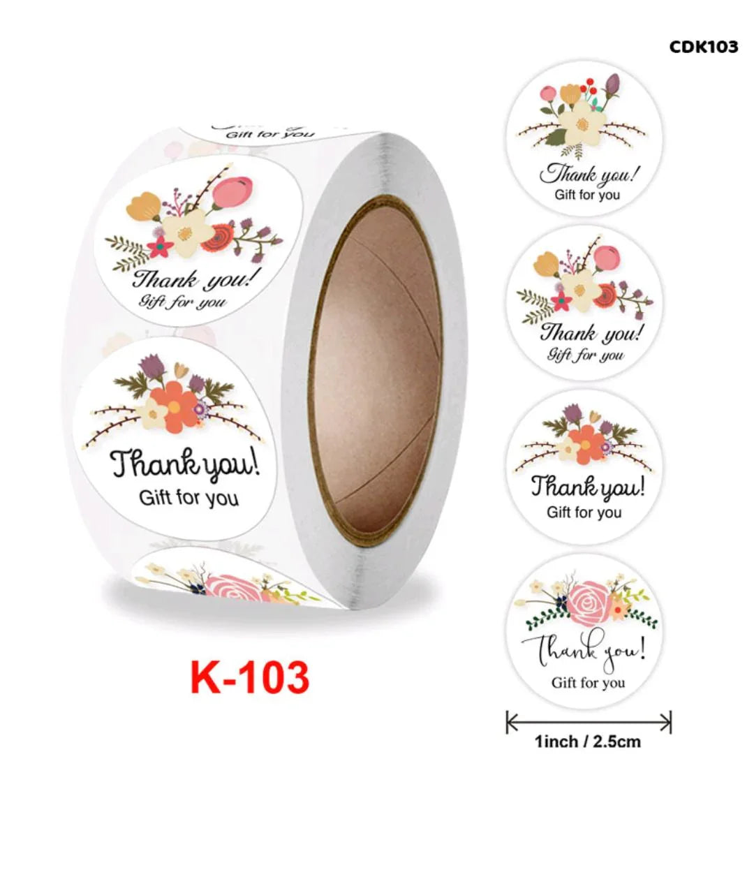 Thank you stickers & labels for Packaging (500 Sticker Roll of 1 Inch)