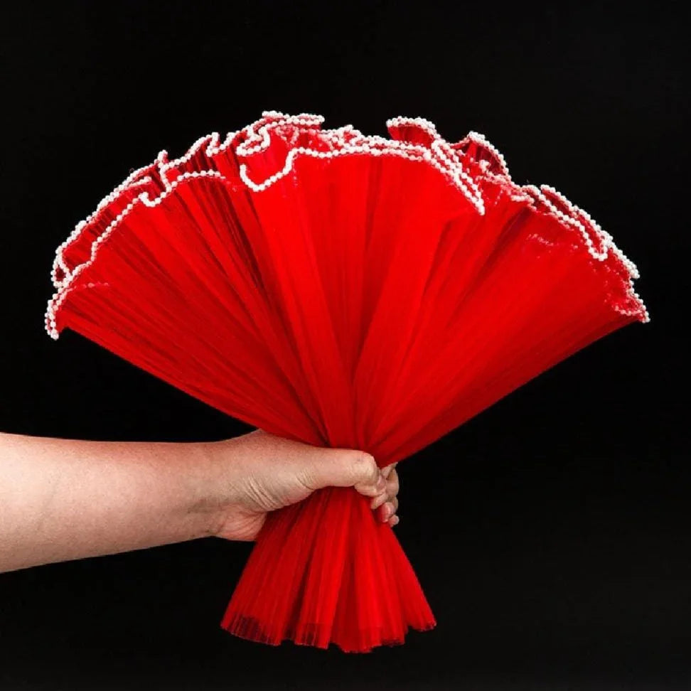 Premium Red Wrinkled Net Wrapping Paper with Pearl | 64cm Gift Wrapper