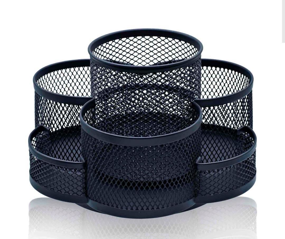 Quantity: 1 set Type: Pen stand set with multiple compartments Material: Durable metal with mesh...