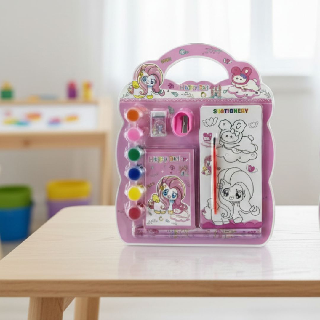 Kids Art Stationery Set | Paints, Brush, Sharpener & Coloring Sheets l Pack of 1