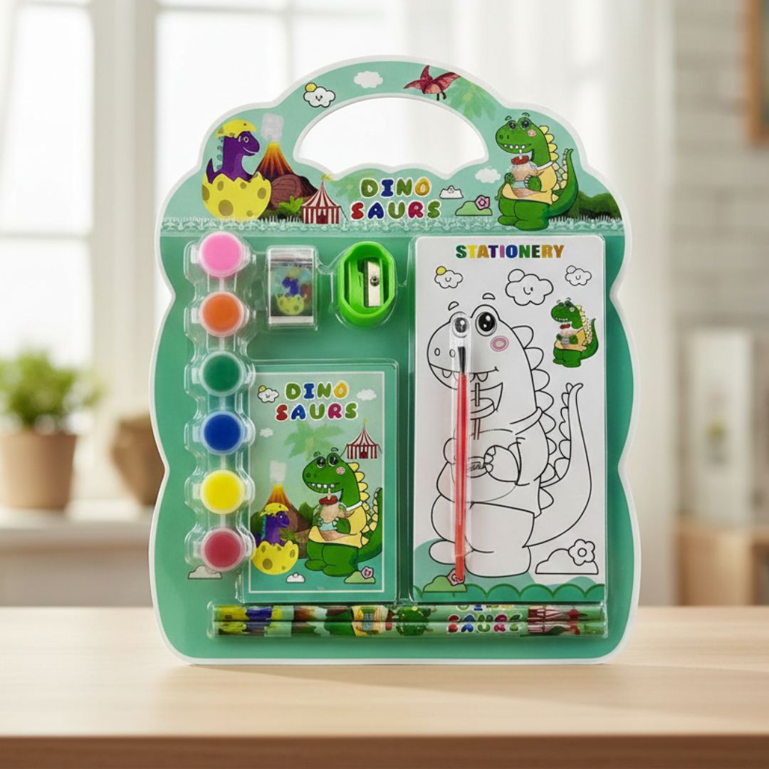 Cute Dinosaur Stationery Set | Painting Colors, Brush, Pencil & Coloring Sheets for Kids :...