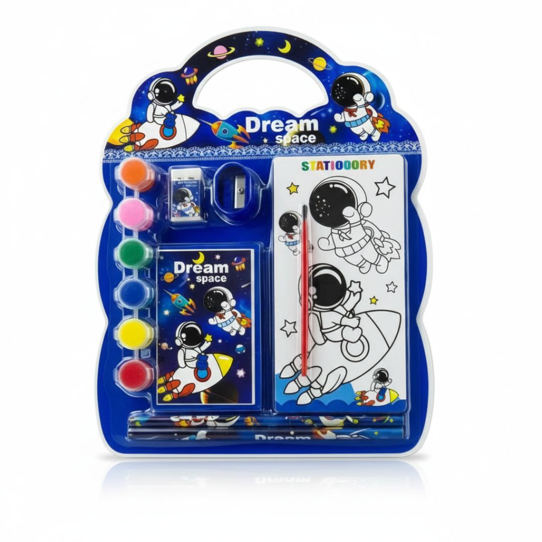 Cute kids Space Painting & Stationery Kit | Astronaut Colour Set & Notebook l Pack of 1 contains 6 items