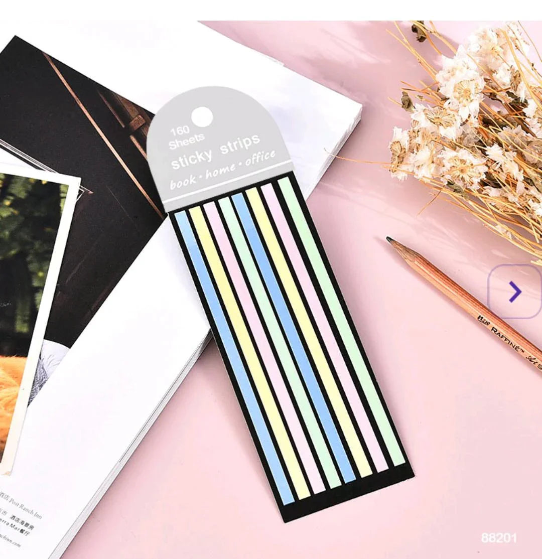 • Pack of pastel-colored sticky notes• 8 stripes, each measuring 14 cm × 5 mm• Soft, soothing...