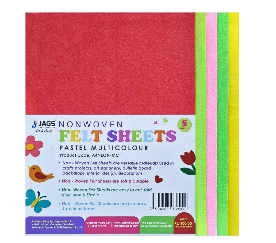 A4 Nonwoven Felt 5 Sheet Pastel Multi Colour – A4NEON-MC