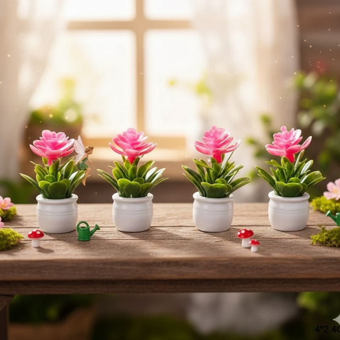 Cute Miniature Plant Pot with Flower - Pack of 4 Pieces