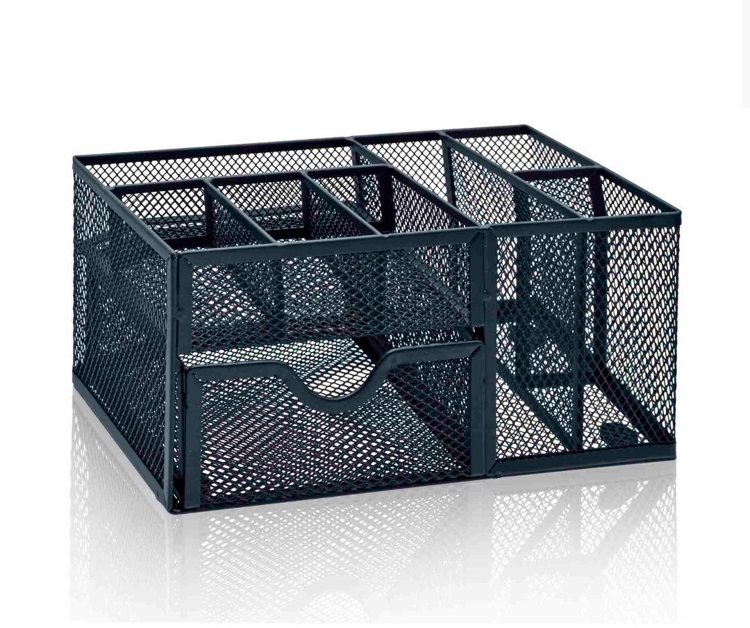 Quantity: 1 set Type: Pen stand set with multiple compartments Material: Durable metal with mesh...
