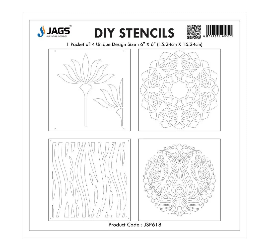 Jags Stencil Plastic 6x6 – 4 Pcs Set – JSP618