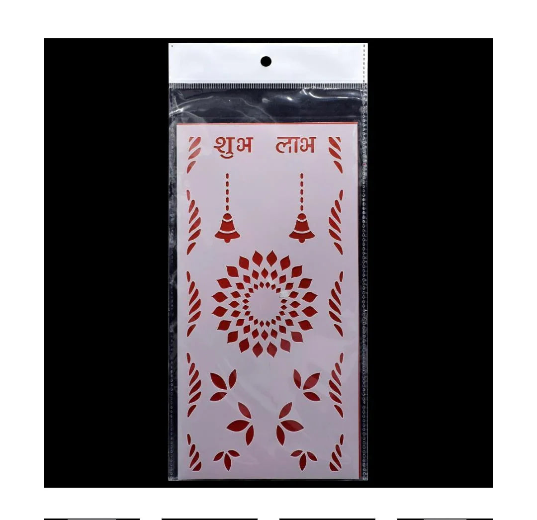 • Quantity: 1 stencil• Size: 4 x 8 inches• Design: Shubh Labh with bell motif•...