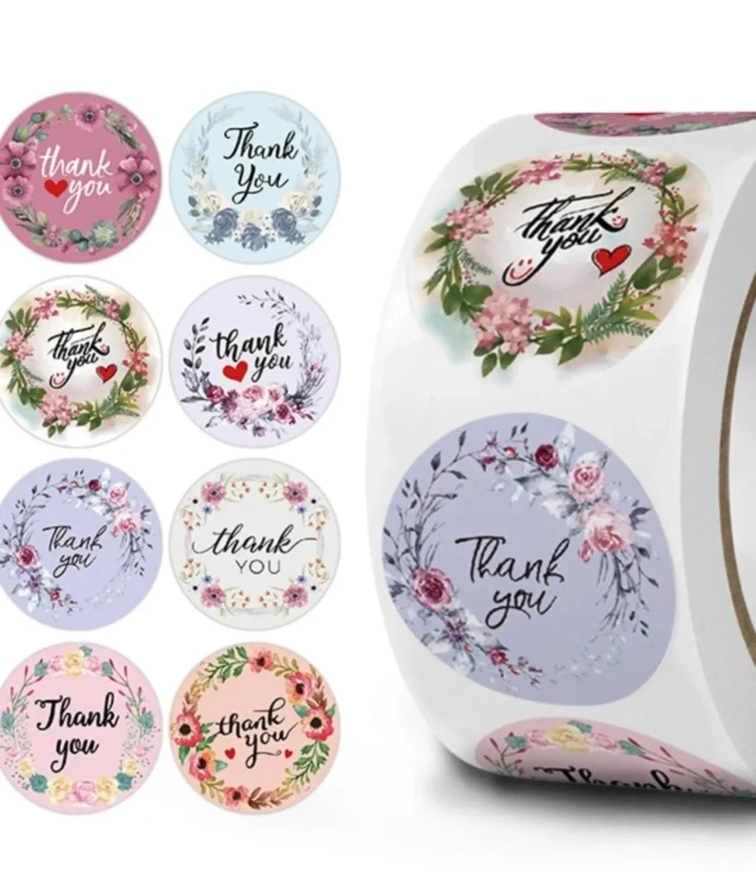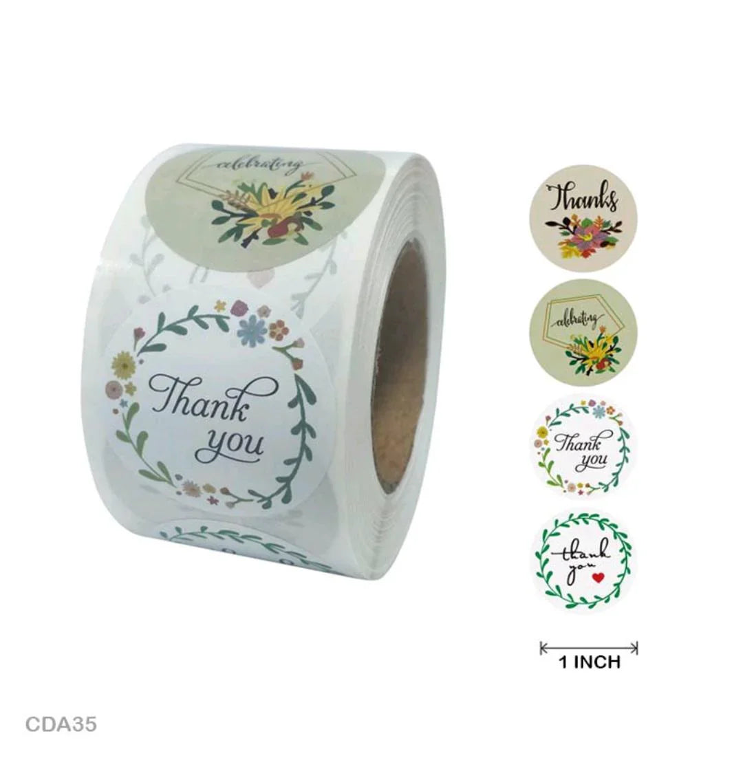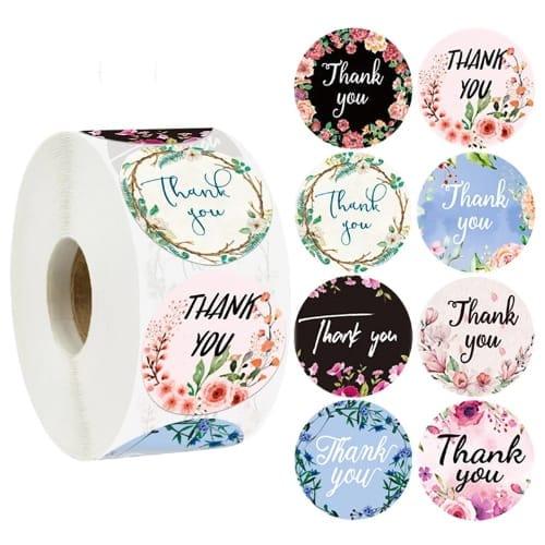 Floral “Thank You” Stickers Roll – 500 Pcs (1 Inch Each). Add a warm, personal touch...