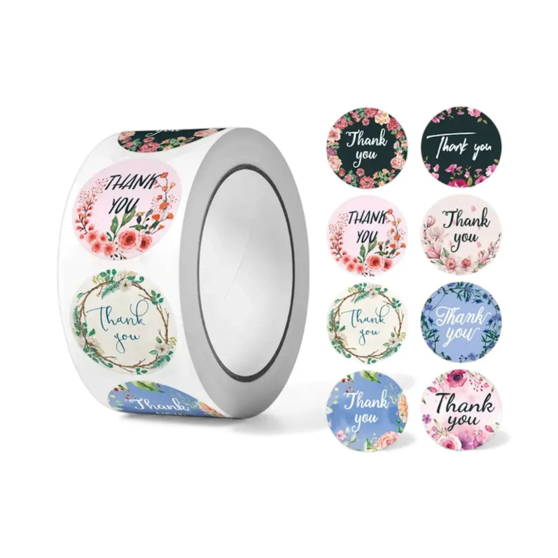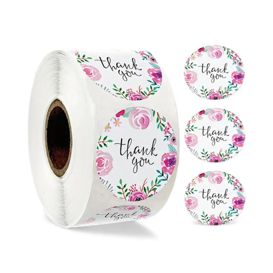 Floral “Thank You” Stickers Roll – 500 Pcs (1 Inch Each). Add a warm, personal touch...