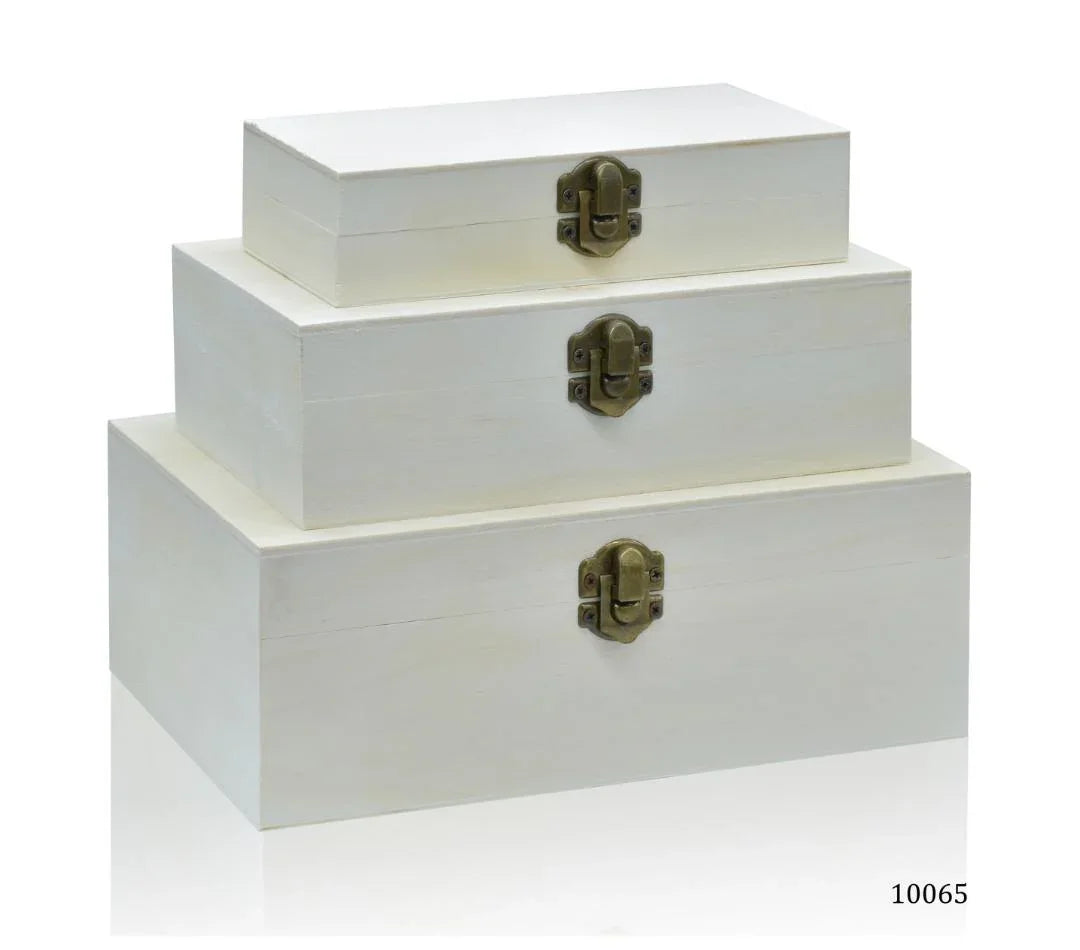 Set of 3 Rectangular Wooden Storage Boxes – 10065
