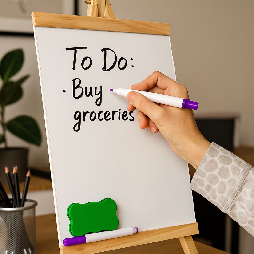 19 White Board with Wooden Easel | 25x46 cm | Model 19W. This White Board with Easel (Model 19W) is perfect for presentations, art displays, home learning, or creative projects. The compact 25x46 cm size makes it easy to set up on desks or tables, and the sturdy wooden easel stand adds a classy touch while keeping the board stable. Ideal for teachers, students, artists, and office use, it’s lightweight, portable, and super convenient for everyday use. Comes with a marker and duster for instant setup.