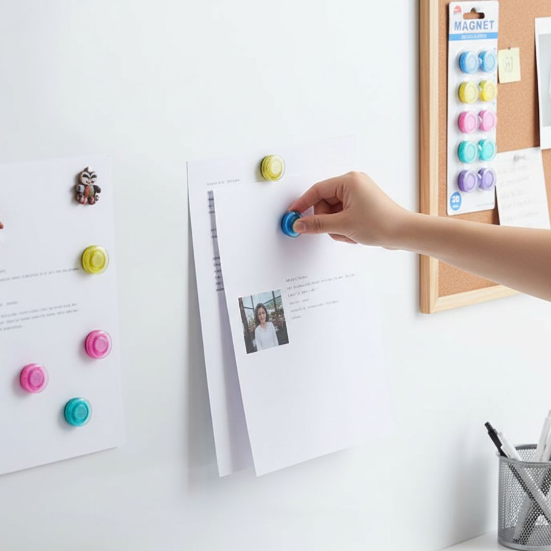These cute lil’ colorful magnets are straight-up lifesavers for your workspace, fridge, craft room, or office board! 🔥 Each magnet has a clean, glossy finish and a super strong hold — perfect for sticking notes, photos, reminders, to-do lists, or even craft pins (yep, they can lift metal pins like a pro 👀✨).