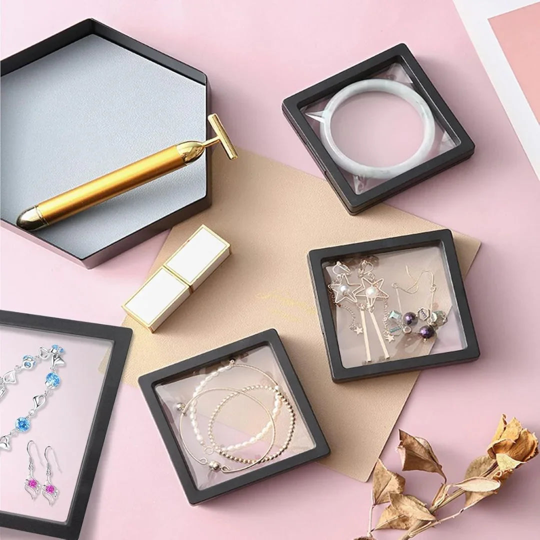 Jewellery Display Box, Floating Frame Box, Transparent PE Film Box, 3D Display Case, Moisture-Proof Jewellery Organizer, Resin Display Frame, Craft Exhibition Box, Aesthetic Storage Box .