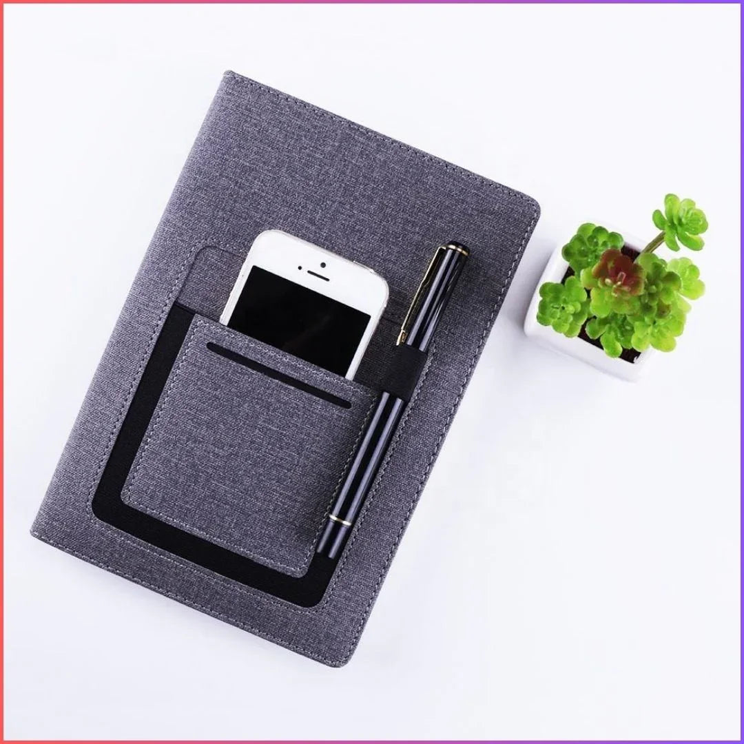 Keywords: A5 business diary, grey office diary, diary with mobile pocket, professional notebook, executive diary A5, work planner notebook, corporate stationery, fabric cover diary