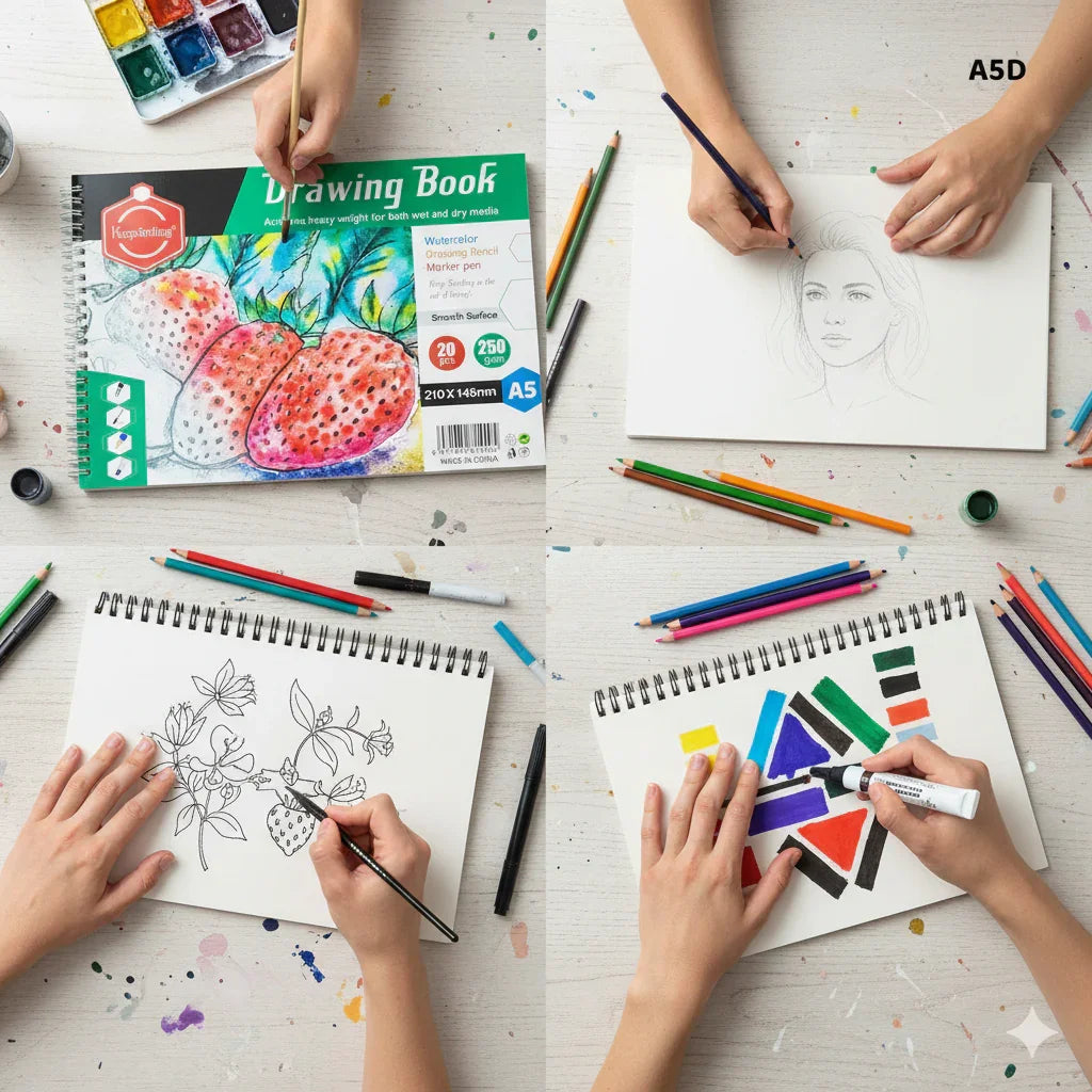 - Pages: 20 thick pages (250 GSM) – Excellent for sketching, doodling, light watercolor washes, and preventing bleed-through.