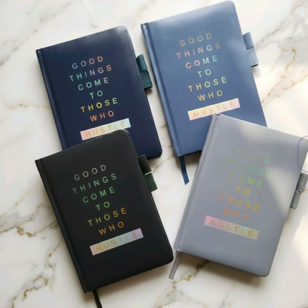 A5 Good Things Come to Those Who Hustle Hardbound Notebook (Pack of 1) : Stay motivated and keep the grind going with this A5 hardbound notebook featuring the iconic Good Things Come to Those Who Hustle quote. With a clean, premium look and sturdy binding, it’s perfect for daily notes, planning, journaling, or boss-move brainstorming. Smooth pages, solid cover, and major main-character energy.