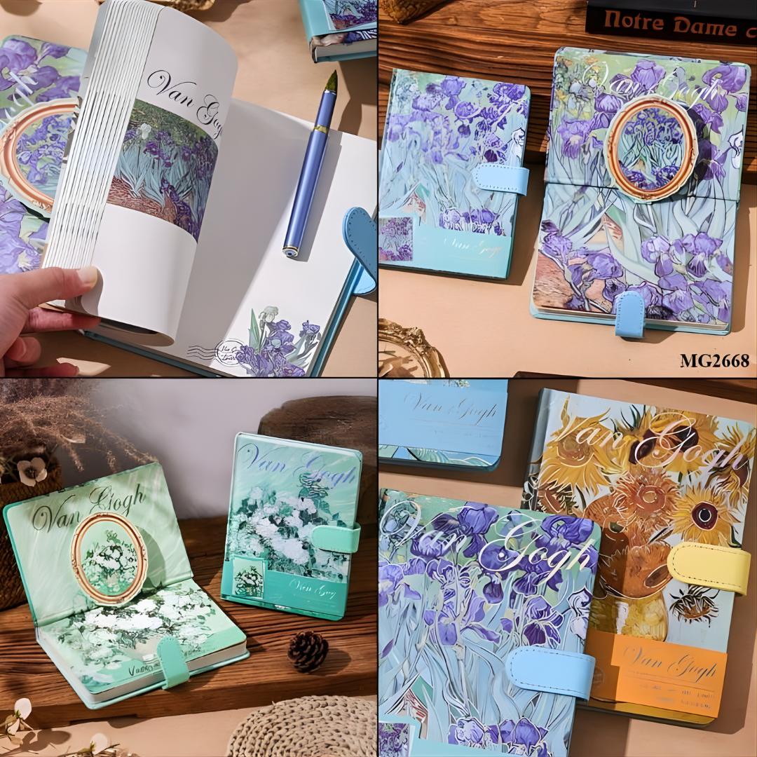 Keywords: van gogh journal, A5 art notebook, aesthetic diary, strap journal notebook, art cover notebook, hard cover journal, gift notebook, creative writing journal.