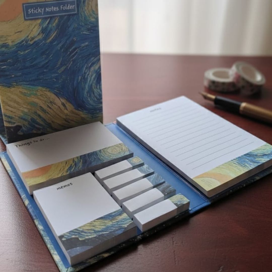 Keywords:Β A6 sticky notes pad,Β Midnight sky notebook,Β Art sticky notes,Β Aesthetic memo pad,Β Van Gogh style sticky notes,Β Study reminder pad,Β Planner sticky notes,Β Decorative memo pad,Β Office stationery,Β Art theme sticky notes