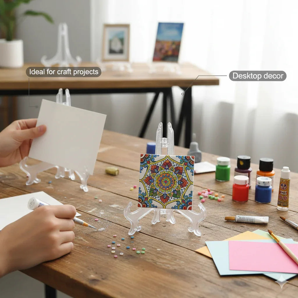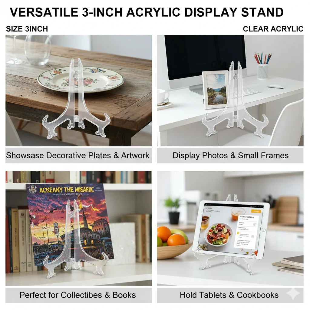 - keywords : Acrylic easel stand, Mini easel stand, 3-inch display stand, Tabletop art easel, Clear acrylic stand, Small canvas easel, Craft display stand, Desktop art stand. 3-inch compact size, Clear durable acrylic, Sleek modern design, Lightweight & portable, Perfect for mini canvases or photos, Sturdy & stable base, Ideal for craft projects or desktop decor.