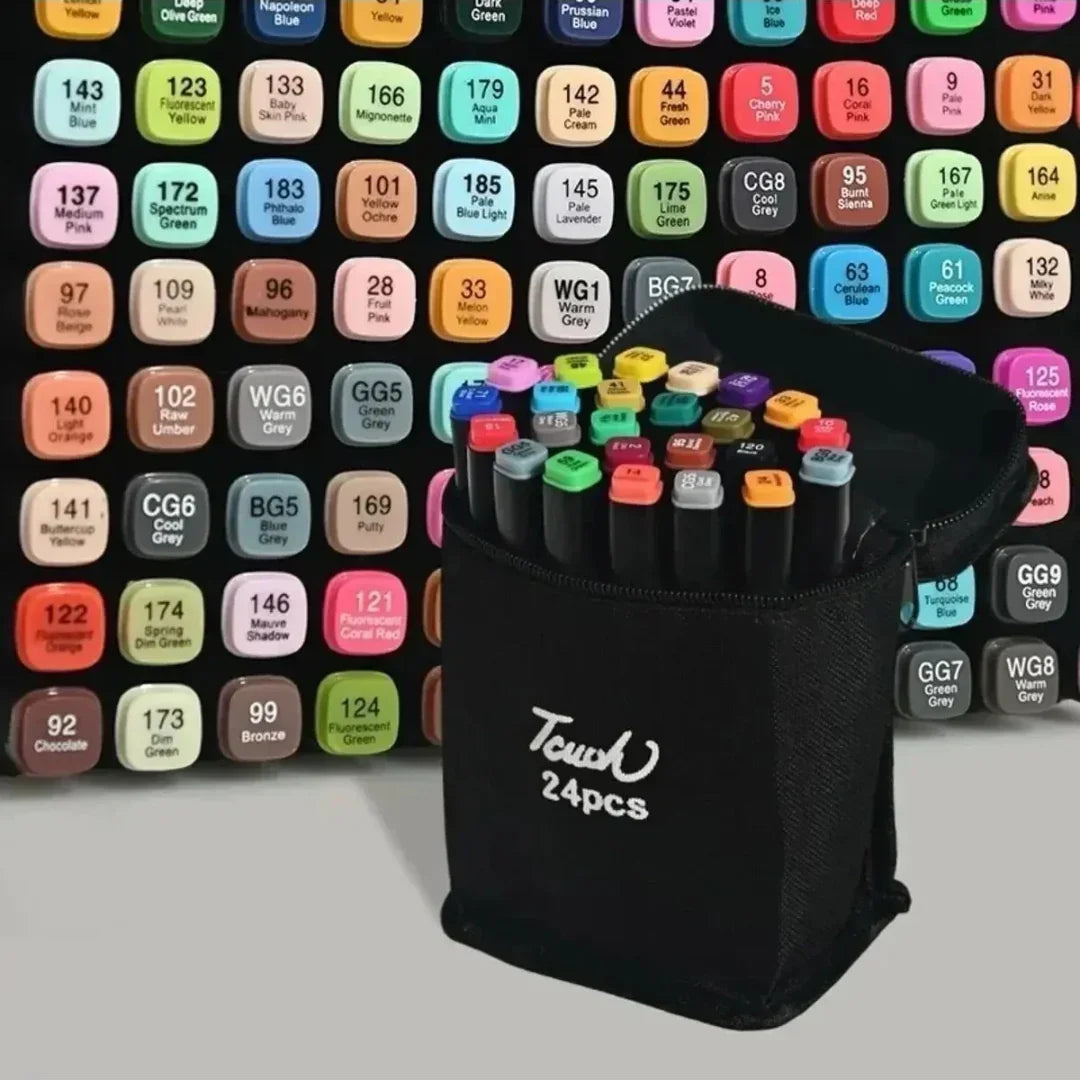 Professional Alcohol Dual-Tip Markers – 24 Vibrant Colors (with Black Pouch)