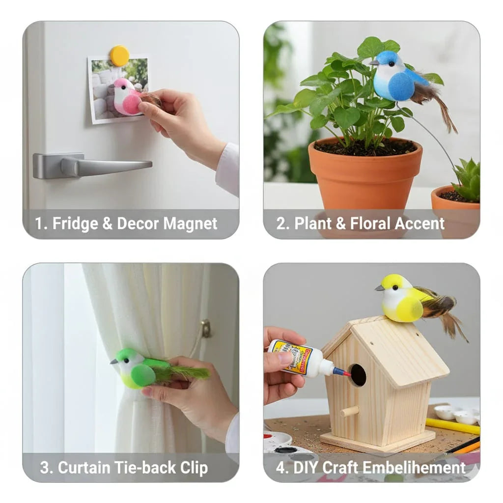 artificial craft birds, mini foam birds, magnetic bird decoration, decorative birds for crafts, diy art birds, resin art accessories, feather bird decor.