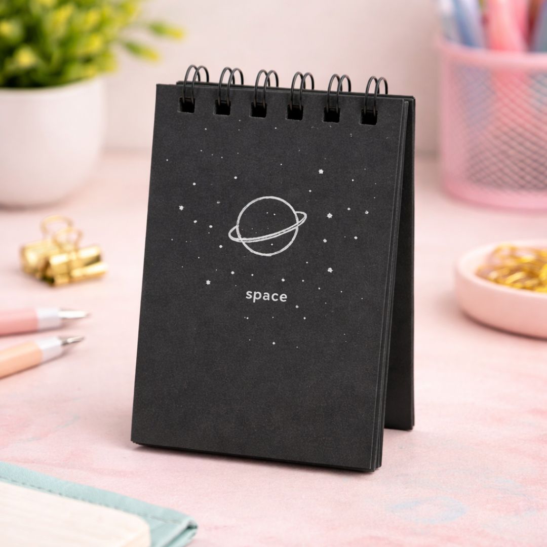 Add a cosmic vibe to your stationery with this Black Space Aesthetic Notebook. Featuring a sleek galaxy-inspired design with planets and stars, this pocket spiral diary is perfect for quick notes, journaling, and creative ideas on the go. Compact and stylish, itβs a must-have for space lovers and aesthetic stationery fans. β¨