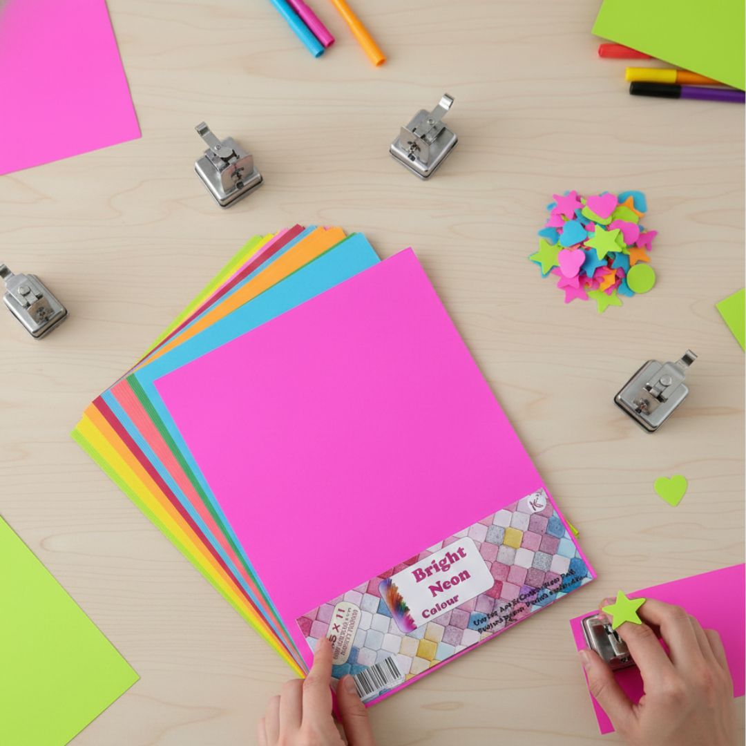Add instant pop to your projects with this bright neon color paper pack. Featuring bold, eye-catching shades, these sheets are perfect for crafts, posters, school work, and creative DIY ideas. Lightweight yet sturdy, they’re super easy to cut, fold, and design with.