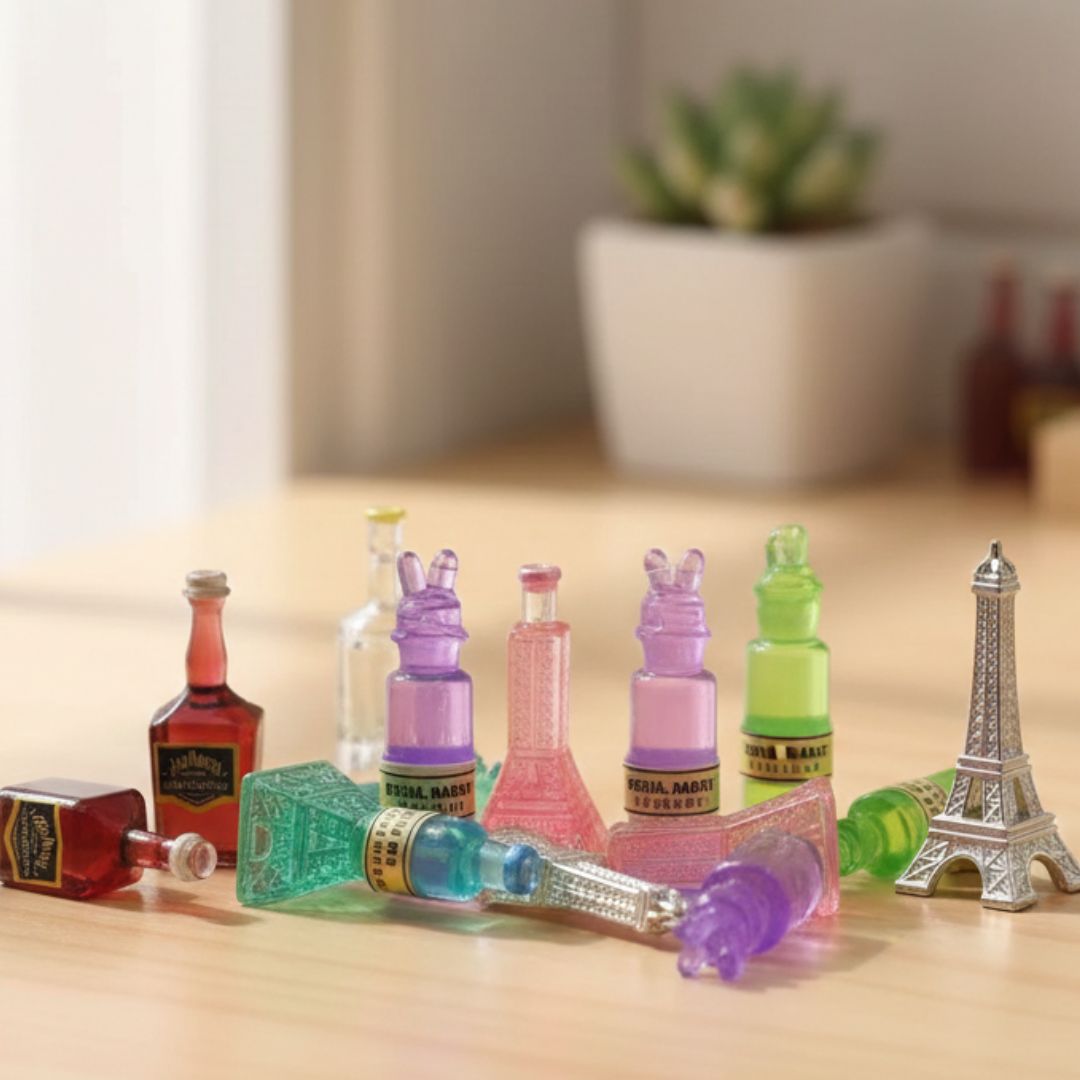 Keywords : tiny craft bottles mini bottles assorted colors miniature bottles DIY decor mini plastic bottles craft embellishments resin art supplies creative accessories