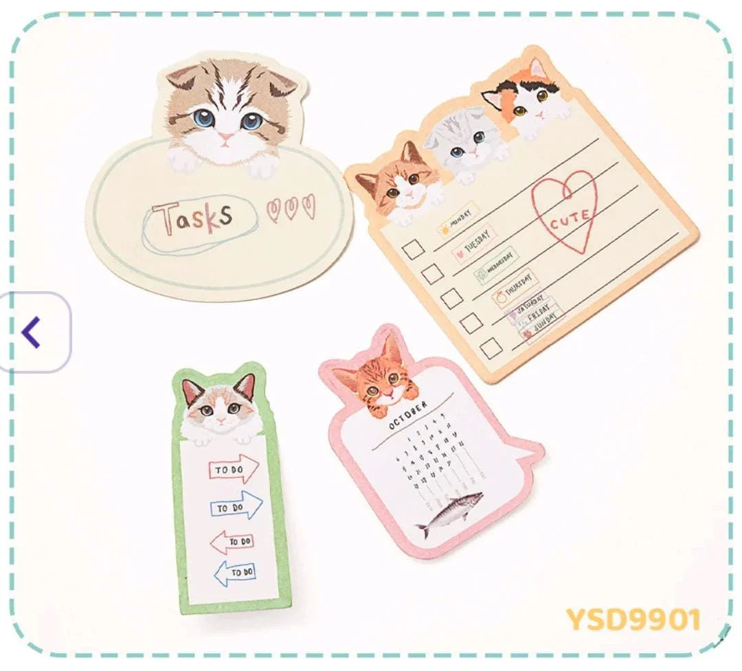 cute cat sticky notes, kawaii stationery, memo pads, study notes, planner accessories, journal supplies, cat-themed post-it, aesthetic sticky notes, BOGO sticky notes
