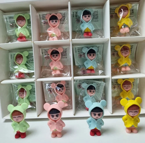 boy girl eraser, hoodie eraser, cute character erasers, kids stationery eraser, kawaii erasers, cartoon eraser set, return gift stationery, school erasers, novelty erasers