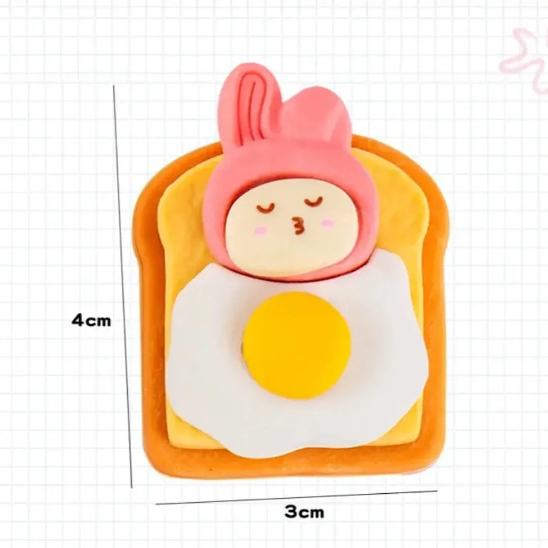 Make mistakes disappear deliciously with this cute bread omelet eraser! A perfect treat for your pencil case — fun, quirky, and functional.
