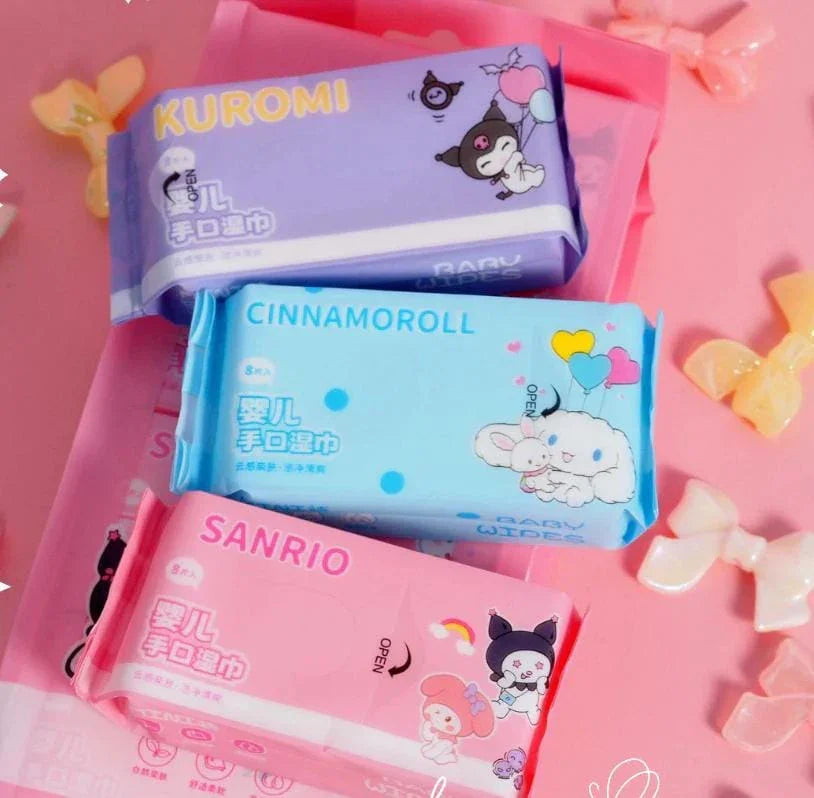 Keep it clean and cute with these adorable baby wipes featuring kawaii Sanrio-inspired packaging! Each pack contains 8 ultra-soft, gentle wipes—perfect for on-the-go use. Designed for sensitive skin, they’re alcohol-free, soothing, and moisturizing, making them ideal for babies, skincare routines, or quick clean-ups.