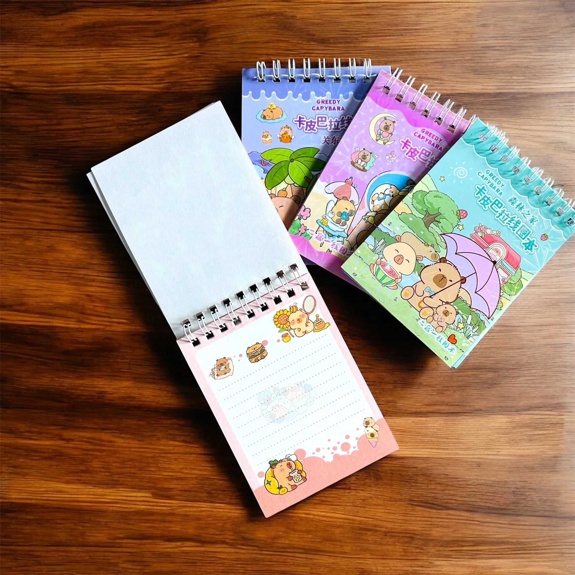 (Buy 1 Get 1 Free ) Cute Capybara spiral a7 diary with sticker sheets l Pack of 1 diary contains 5 sticker sheets l 15 pages