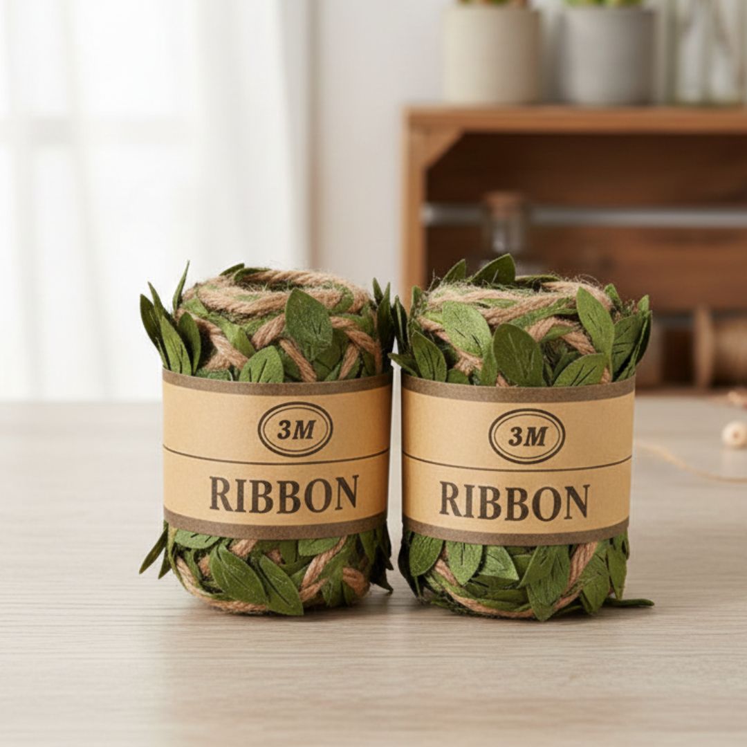 This aesthetic jute ribbon with cute green leaf detailing is perfect for craft lovers. Eco-friendly vibe + natural look = total win.