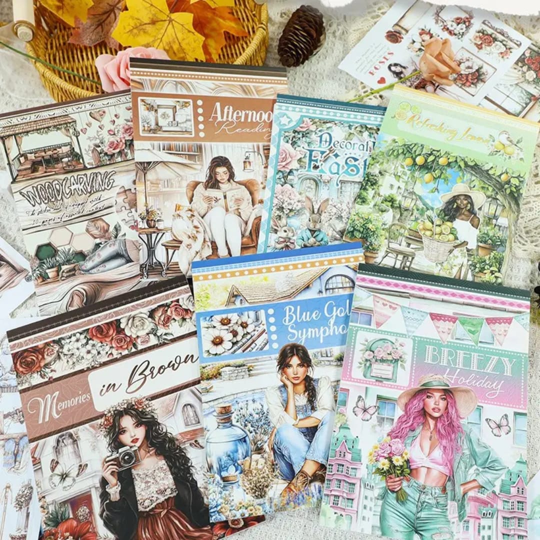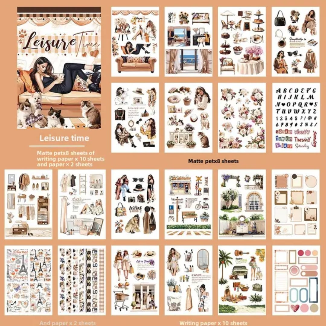 (Buy 1 Get 1 Free) Vintage scenic home A5 journal Sticker book l Pack of 1 contains 12 sheets l Journaling and scrapbooking