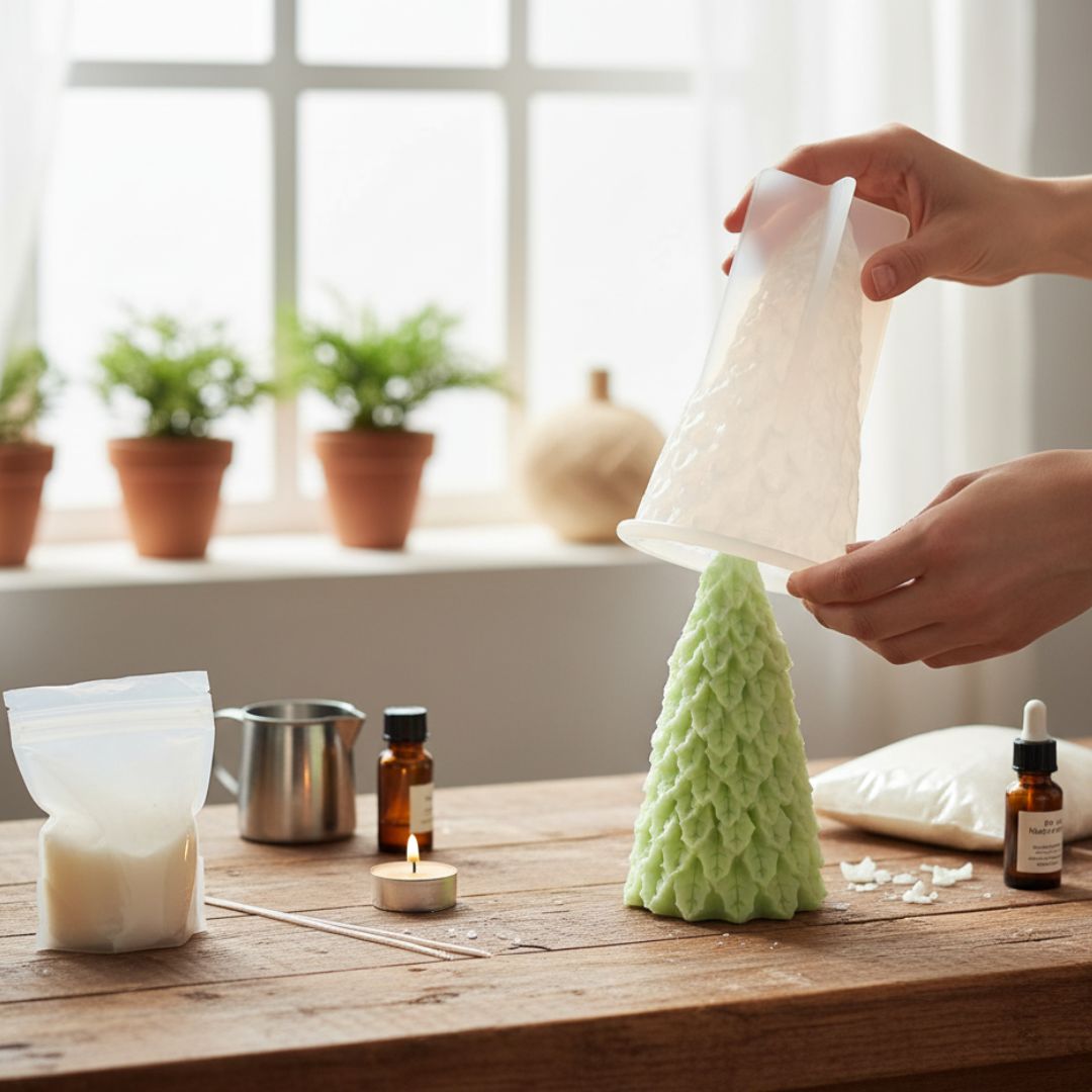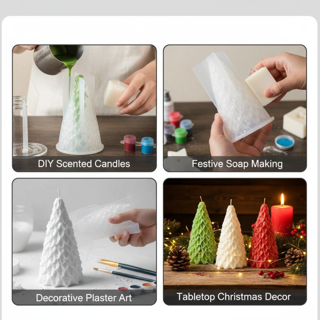Christmas tree mould, silicone mould for candles, resin art supplies, soap mould, DIY craft mould, festive candle mould, 3D tree mould, silicone casting mould, handmade candle supplies, resin moulds for crafts, reusable silicone mould, craft making tools.
