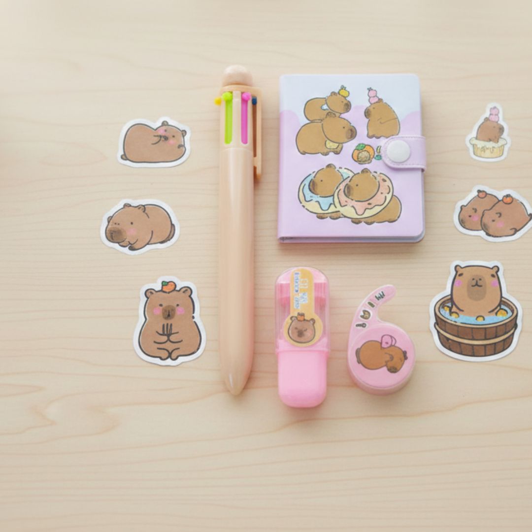 capybara stationery, cute stationery set, kids gift set, kawaii notebook, capybara pen set, school supplies kit, mini notebook set, kids return gift, cute eraser set, pastel stationery
