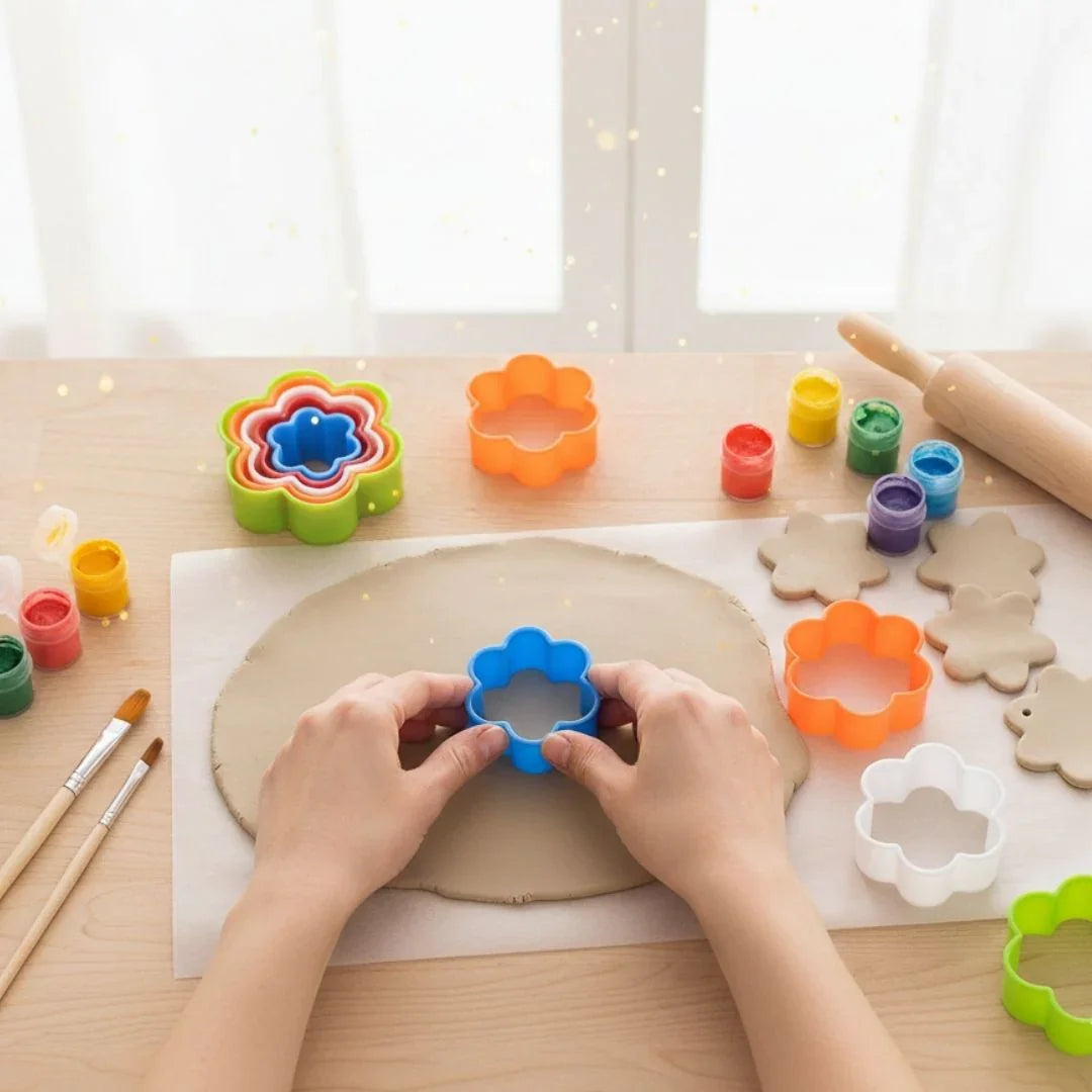 Clay Model Set – Plastic Flower Cutters : Make your clay crafting way more fun with this colourful 5-piece flower cutter set! Each cutter comes in a different size, letting you create layered petals, shapes, and cute floral designs super easily. Perfect for clay art, DIY jewellery, baking, fondant work, and kids’ craft time 🌼💛