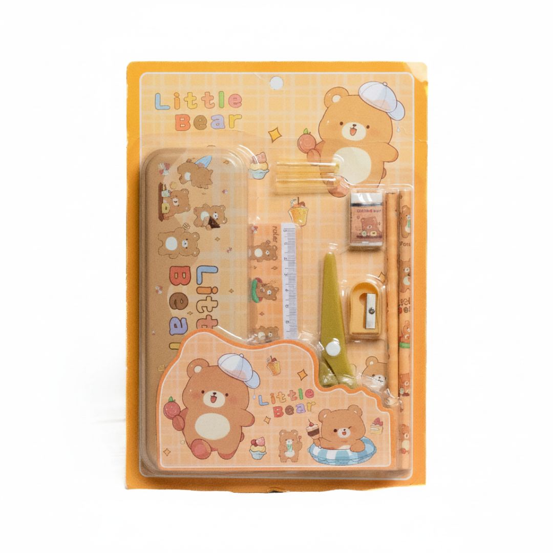 cute kids stationery set, little bear stationery, kids school kit, pencil box set, kids gift set, cartoon stationery pack, school supplies for kids, return gift ideas, bear theme stationery, kids study tools