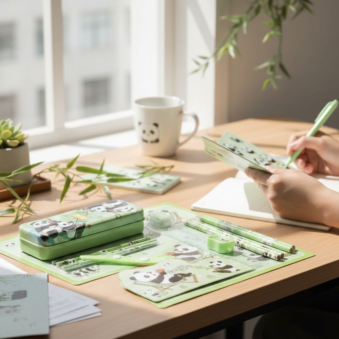 This adorable panda-themed stationery set is giving max cute vibes! 🐼💚