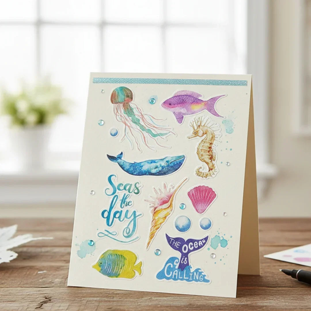 decorative stickers, ocean theme stickers, sea life stickers, journaling stickers, scrapbook stickers, planner decor stickers, kids craft stickers, aesthetic stickers, DIY decoration stickers, notebook decor stickers, sticker sheets pack, art and craft stickers