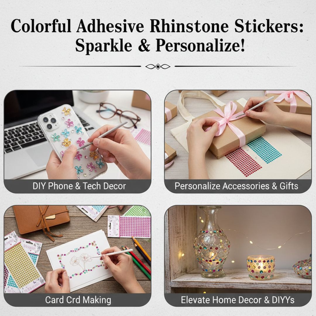 diamond stickers, craft rhinestones, acrylic crystal stickers, DIY embellishment gems, scrapbooking diamonds, journaling bling stickers, mixed color gems, aesthetic craft supplies, sticky decorative stones, kids craft decorations