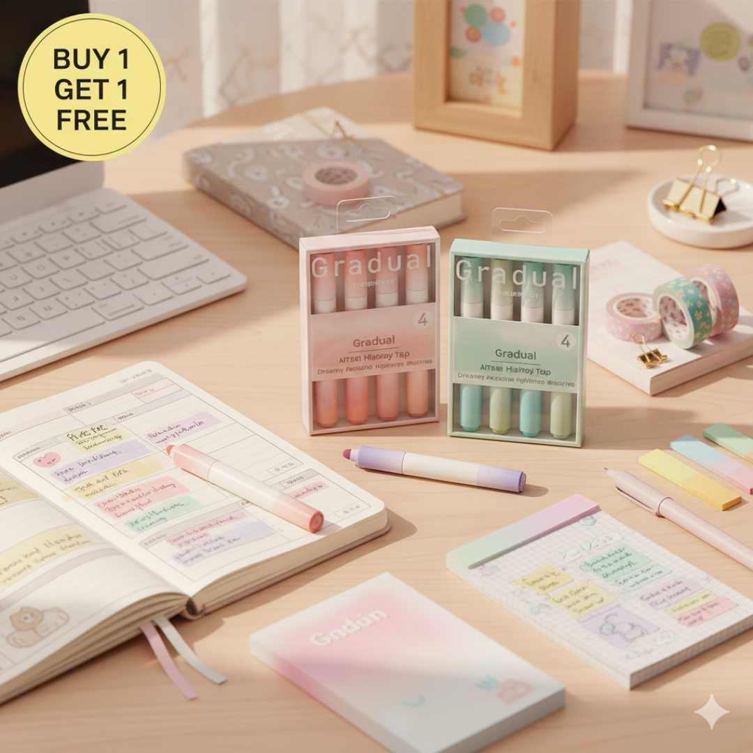 ✨ (Buy 1 Get 1 FREE) Dreamy Pastel Highlighter Set (Pack of 4) — elevate your notes, journaling, and planners with these soft gradient-toned mildliners.