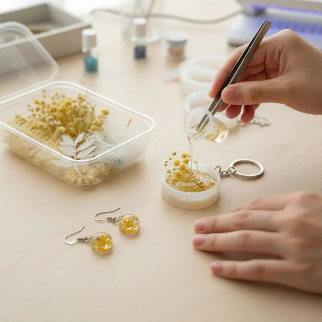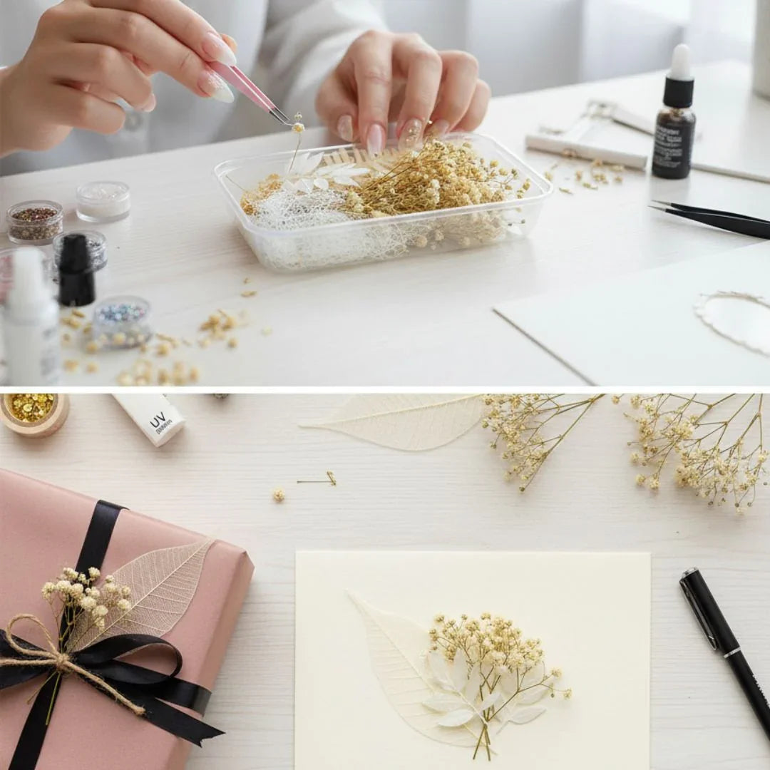 Bring natural beauty into your resin art with this Dried Flower Box (MG-205-13). Each set includes a curated selection of real, preserved dried flowers in soothing beige and yellow tones — perfect for resin crafts, candles, jewelry, soaps, or scrapbooking. The flowers are carefully packed to maintain their delicate texture and color for long-lasting charm.