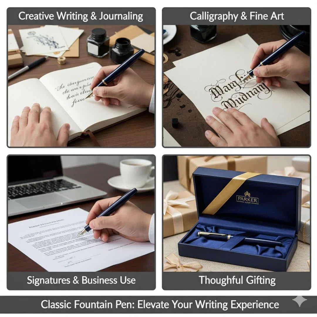 Elegant Fountain Pen with Black Finish and Golden Clip - 388FPBKGC