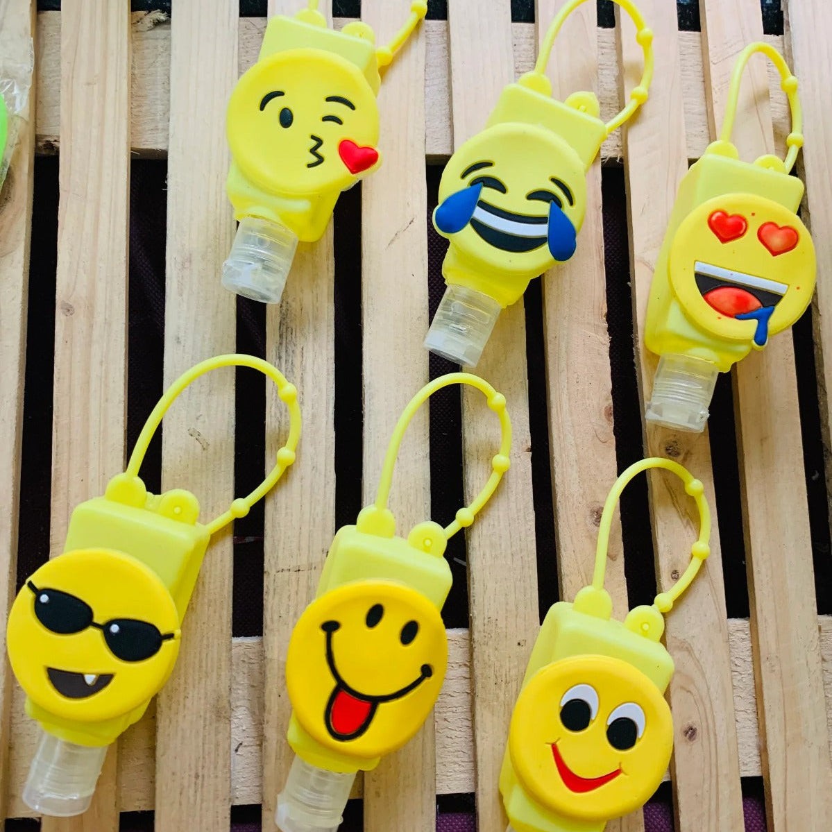 Stay clean on the go with this cute emoji travel sanitizer bottle 💛 Designed with an adorable emoji face and a compact refillable container that is perfect for carrying sanitizer anywhere.