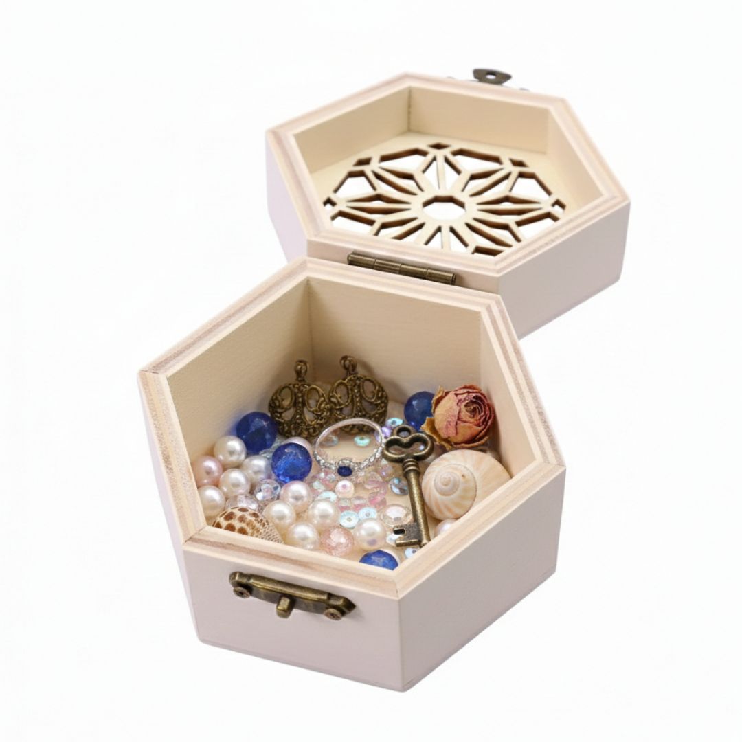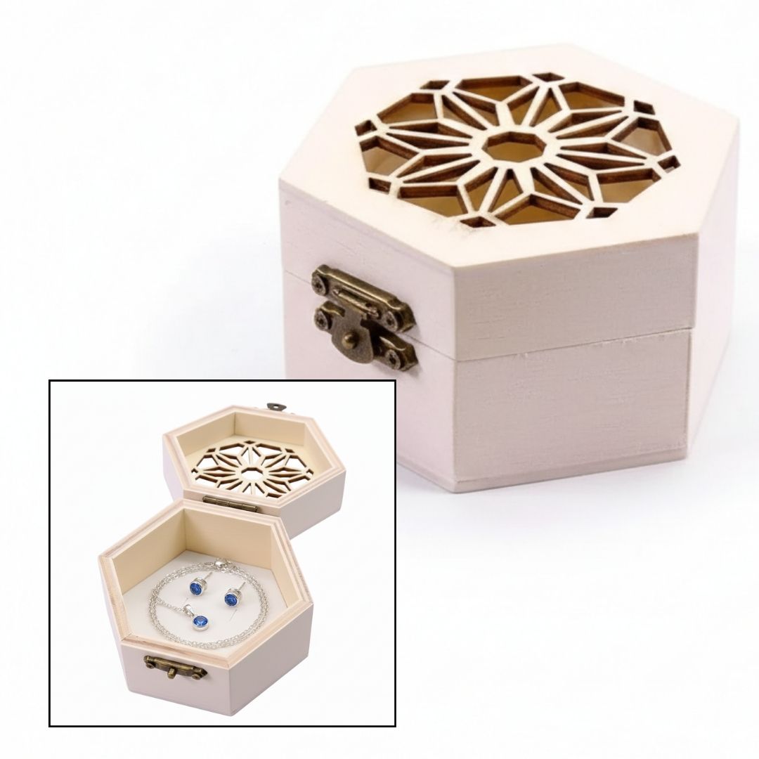 Hexagon Laser-Engraved Wooden Box size 8x8x5 cm , 6 laser cut Pack of 1
