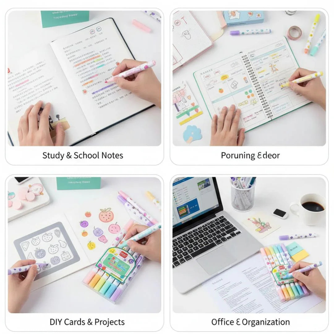 Make your notes look extra cute and aesthetic with these Fruity-Milky Pastel Highlighters! Each marker is double-ended, giving you both fine and chisel tips, and comes with a sweet fruity scent that makes studying or journaling way more fun.