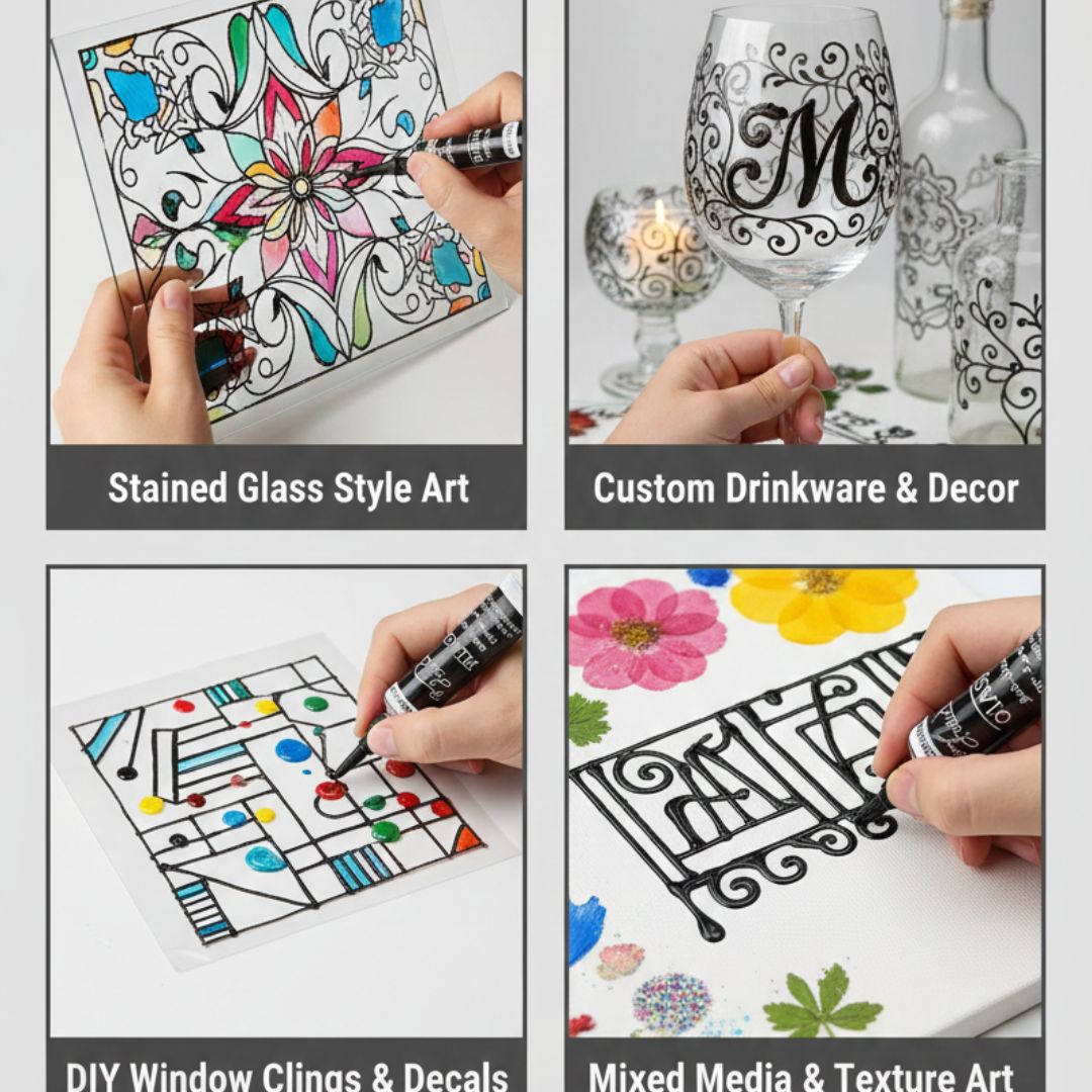 - Perfect For: Stained glass effects, Mandala designs, Bottle art & glass painting, Ceramic detailing, Canvas outlines, Craft & DIY projects